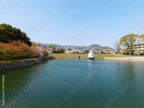 Fototapeta premium ニテコ池(兵庫県西宮市で2021年4月撮影)