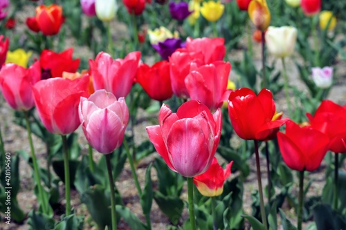 © masamasa3, Obraz premium 日本の観光地の美しいチューリップガーデンのクローズアップ