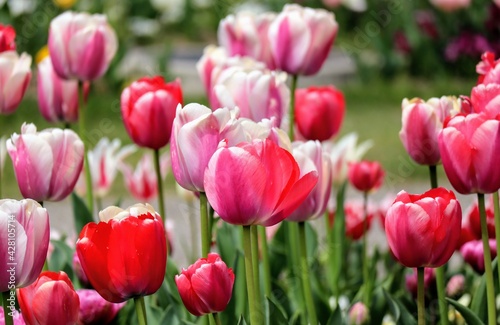 © masamasa3, Obraz premium 日本の観光地の美しいチューリップガーデンのクローズアップ