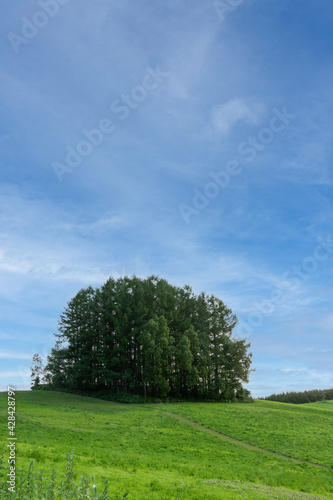 Fototapeta premium 新緑の丘とカラマツ林 美瑛町