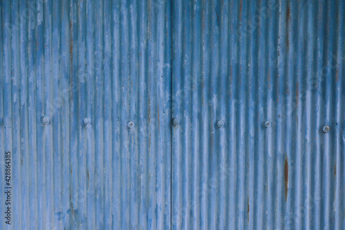 © Yoshiyuki, Obraz premium 古びたトタン板 波板 青緑