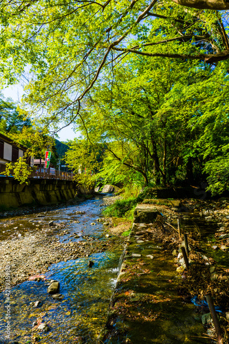 © Nao, Fototapeta premium 高尾山口駅前の小川 春の風景