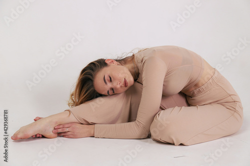 © Дарья Диденко, Fototapeta premium Девушка, практикующая упражнения йоги и стрейчинга