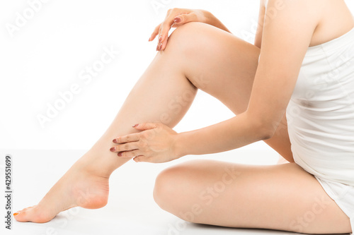 Obraz premium 脚をスキンケアする女性