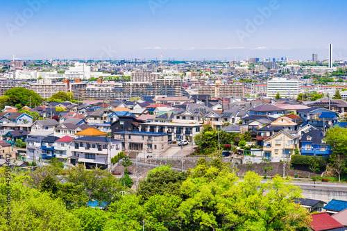 © oben901, Naklejka premium 青空が広がる郊外の住宅地
