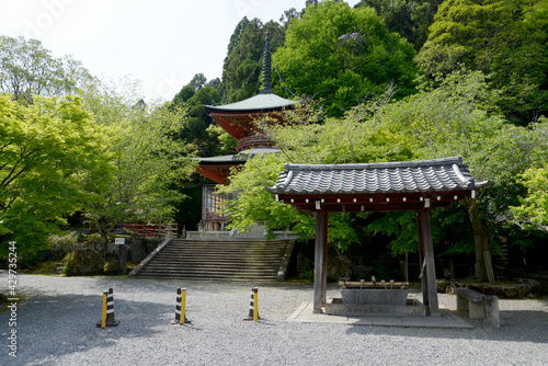 Fototapeta premium 法輪寺 手水舎と多宝塔 京都市嵐山