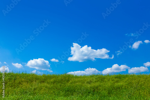 Obraz premium 緑の草原と青空に雲