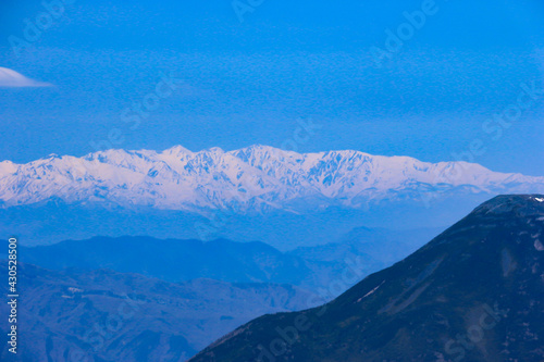 Obraz premium 八ヶ岳硫黄岳山頂から 北アルプス白馬三山遠景、茅野市、長野県、日本