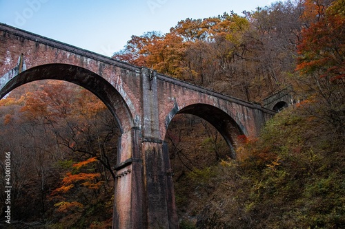 © yonyonmiyon, Fototapeta premium 紅葉でと赤レンガのめがね橋