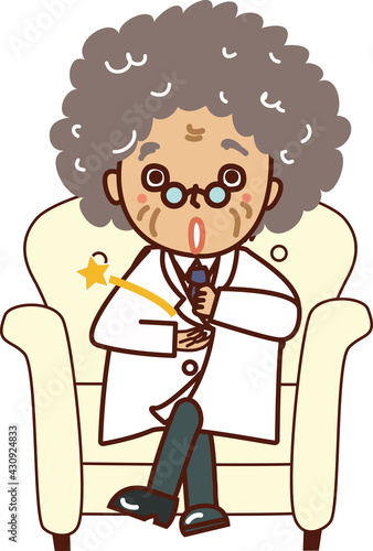 © aki-sugimoto, Fototapeta premium ソファーに座って何かを思いついた博士(医者)。