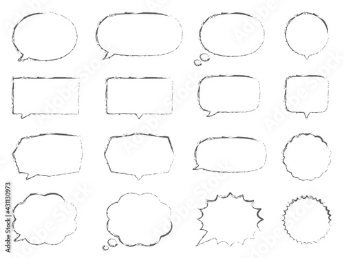 Obraz premium 吹き出しイラスト、アイコンセット(手描き風、重ね線)