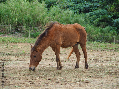 © Keisuke.W, Fototapeta premium 草を食べる与那国馬