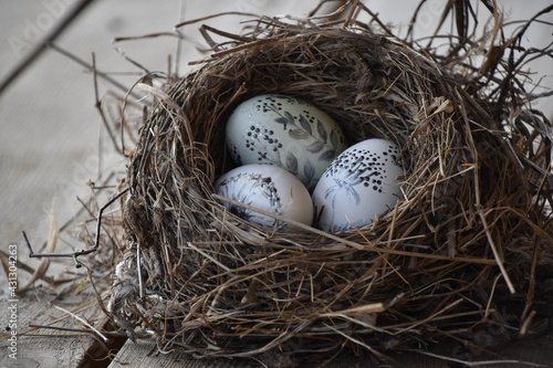 © Tarasova Natalia, Obraz premium Пасхальные яйца в гнезде