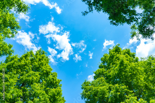 Obraz premium 木々の緑と青空