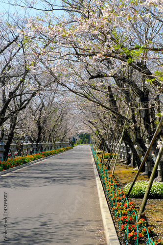 Obraz premium ソメイヨシノのトンネルが出迎える特攻平和会館の道「縦構図」