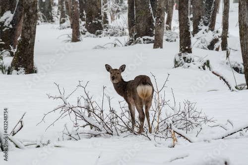 Fototapeta premium 冬の森のエゾシカ