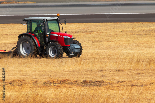 © 木村 亨, Obraz premium 草地の上を走る赤いトラクター