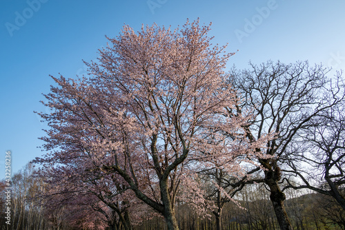Obraz premium 春の浦河町 優駿さくらロードの桜
