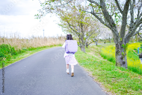 © maroke, Fototapeta premium 小学校に登校する小さな女の子