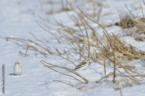 Obraz premium 雪上のユキホオジロ(北海道・野付半島)