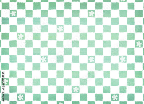 Fototapeta premium 桜模様 緑と白の市松模様背景