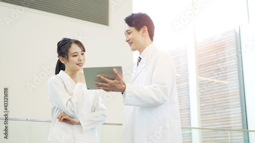 Fototapeta premium 相談する白衣の男女 医師 科学者