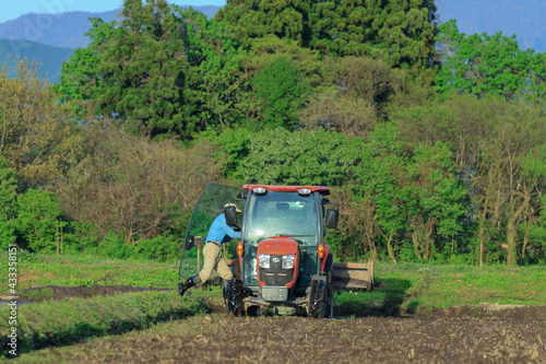 © amosfal, Fototapeta premium トラクターでの代掻き作業(田掻き) 農業 水田 稲 農家