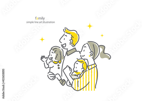 Obraz premium ポジティブな四人家族のシンプルでお洒落な線画イラスト 明るい未来イメージ コンセプト
