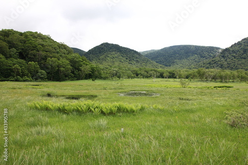 © onaka, Fototapeta premium 7月の尾瀬の風景。雨の降る湿原。