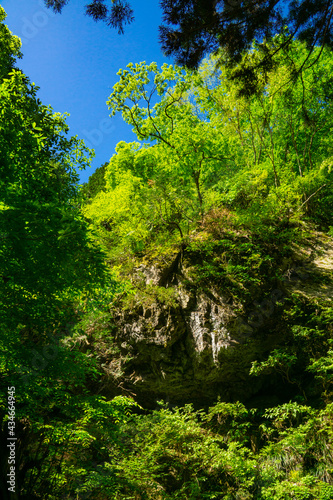 Obraz premium 森の風景 巨岩と青空
