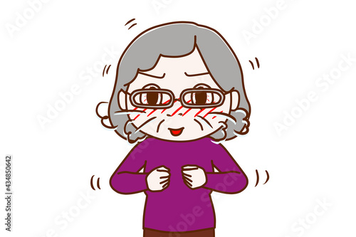© whitetanwhite, Obraz premium 顔を真っ赤にして大興奮で鼻息が荒い高齢の女性