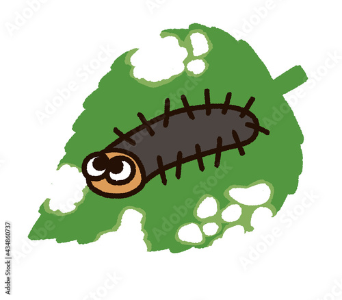 Naklejka premium 毛虫と虫食いだらけの葉っぱ
