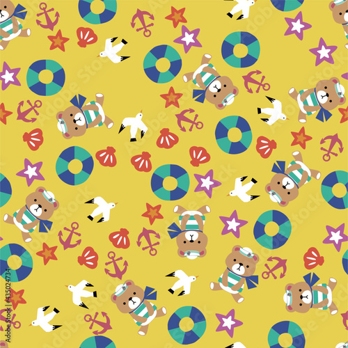 Obraz premium 海とテディベアのパターン。 シームレスな模様。壁紙、包装紙の素材。テキスタイルデザイン。