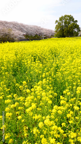Obraz premium 埼玉県幸手市 権現堂堤の桜並木と菜の花(縦構図) 4480