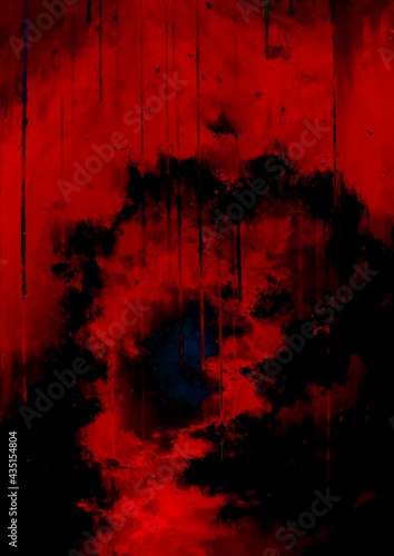 © いおるな, Obraz premium 幻想的な赤の滲む洞窟テクスチャ背景