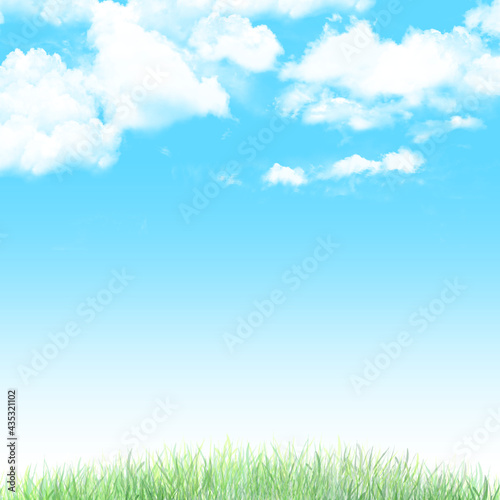 Obraz premium 青空と雲と草原の背景(正方形)