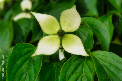 © megustaelbosque2020, Fototapeta premium まるでモチーフのような花を咲かせた、満開のヤマボウシ