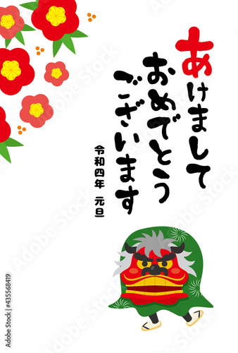 Obraz premium 2022年 年賀状デザイン 梅と獅子舞 寅年
