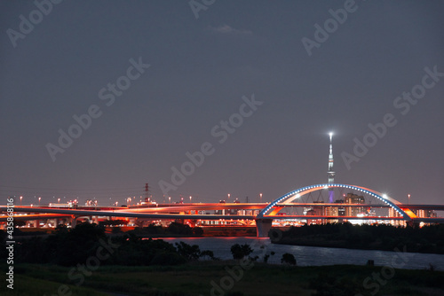 © 尚吉 鈴木, Obraz premium 五色桜大橋のある夜景