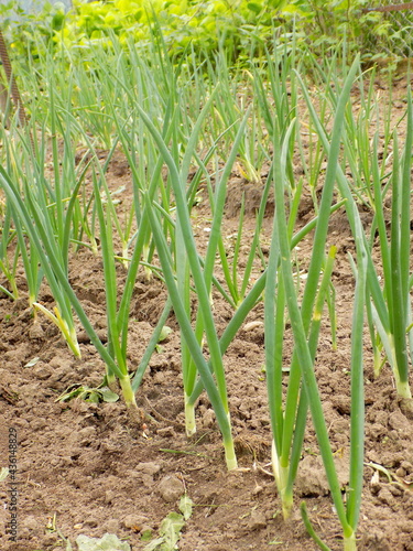 Fototapeta premium Зеленый лук на грядке