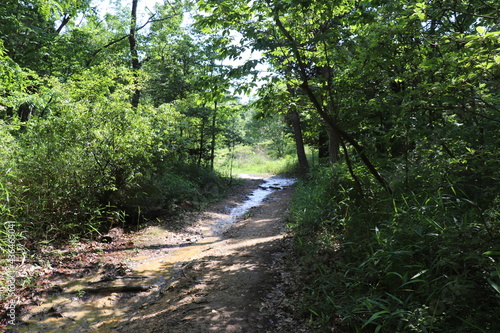 Fototapeta premium 山道 ぬかるみ 雨上がり 山奥 山林 抜け道 森