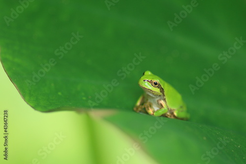 © mex99, Obraz premium サトイモの葉とアマガエル
