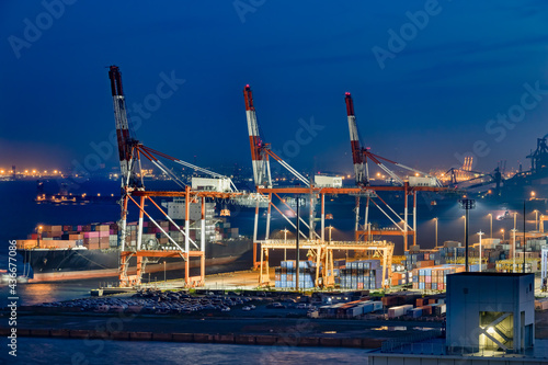 Fototapeta premium 夜の川崎工業地帯と港の巨大なクレーン