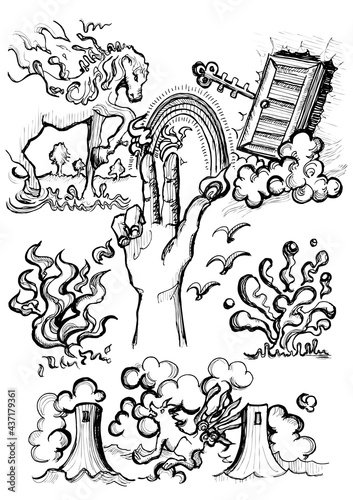 © Third Stone, Fototapeta premium サイケデリックで魔術的な線画