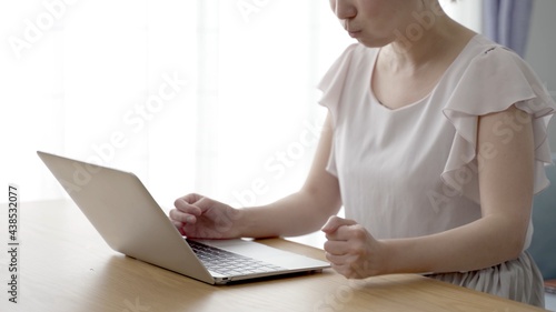 © taka, Fototapeta premium パソコンを使う不機嫌な女性