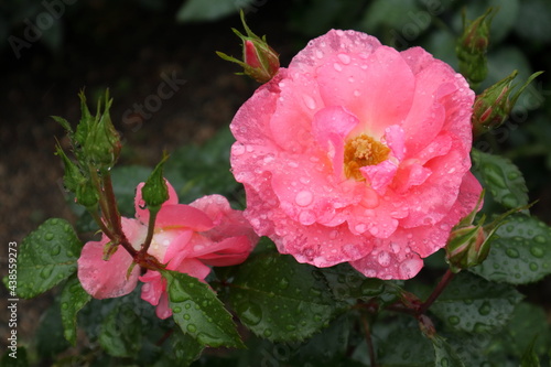 © Sunny.P, Obraz premium 雨上がり 水滴が付いているピンクのバラ