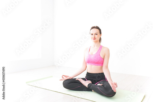 Fototapeta premium スポーツウェアを着てヨガをする外国人の女性