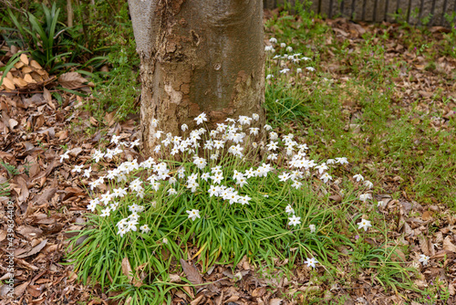 Obraz premium 木の根元に咲く沢山のハナニラ