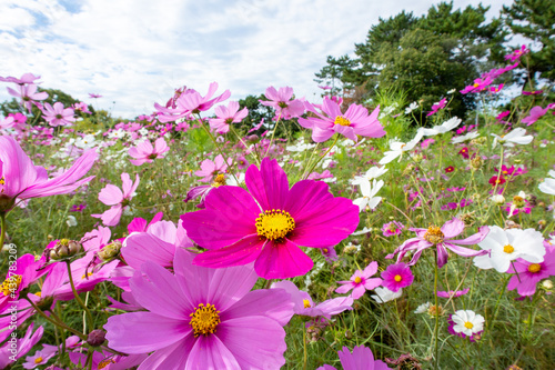 Obraz premium コスモス畑のピンクのコスモス