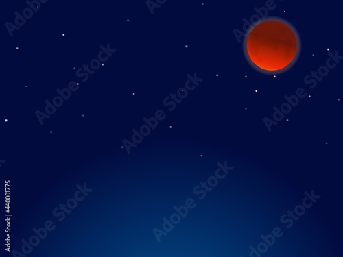 Fototapeta premium シンプルブラッドムーン(皆既月食) & 星空イメージ背景